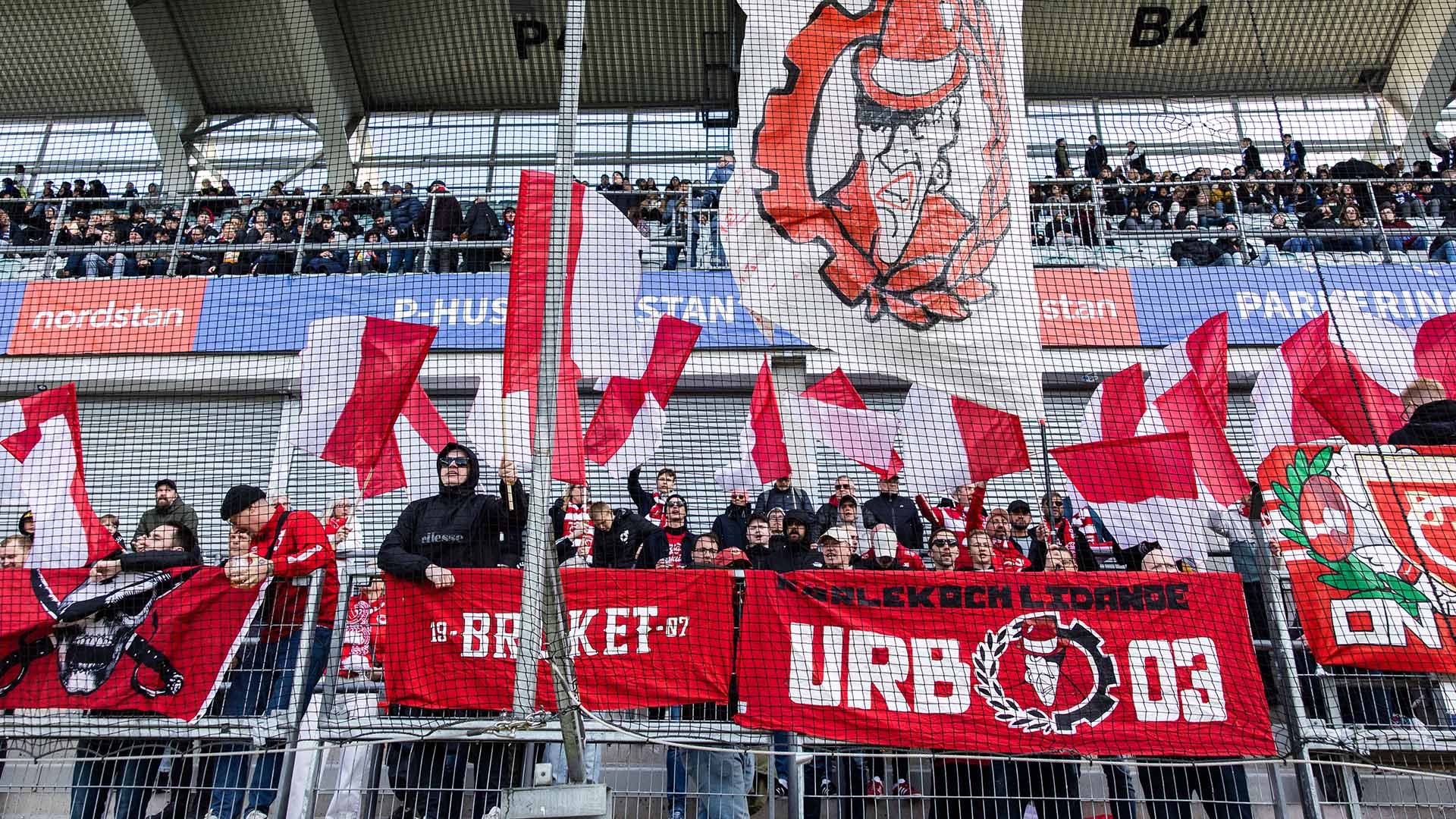 Banderollplatser: Räcket längst ner på bortasektionen är godkända som banderollplatser. Hela kortsidan kan användas till banderoller/tifo även om alla zoner inte är öppna.